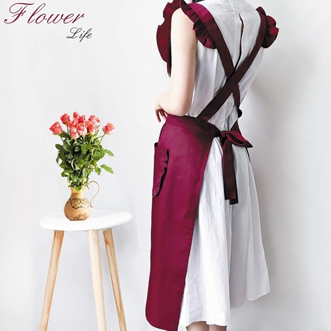 [sherelly] フリル エプロン女性用 ドレスエプロン H型保育士 おしゃれ かわいい ワンピース 北欧 フリフリ キッチン ガーデニ