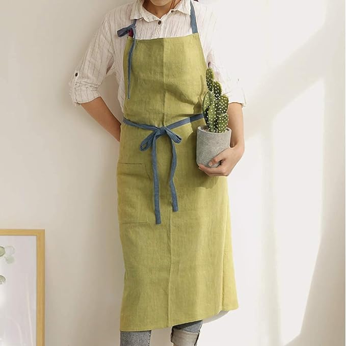 Anyasun エプロン 首掛け リネン カフェ風 シンプル おしゃれ ナチュラル 北欧風 無地 おしりが隠れる ポケット付き 男女兼用
