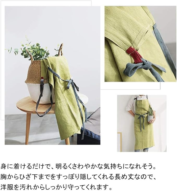 ・【ポッケト付き、肩の紐で調節可能】首紐とポケットのタグがアクセントとして全体を引き締めます。お気に入りの一枚を持つことは、家事への取り組みを前向きにしてくれます。いつもの暮らしに彩りをプラスして楽しく家事をしませんか。