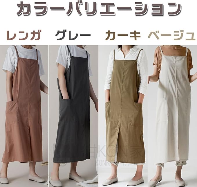 ・【素材】コットン100% 【サイズ】総丈約98cm、胴囲約110cm 【カラー】グレー、ベージュ、レンガ、カーキ