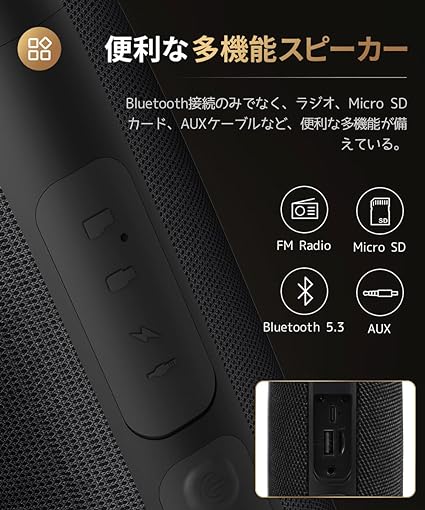 ・【パッケージの内容&1年間品質保証】パッケージの内容:Bluetooth スピーカー、Type C充電ケーブル、AUXオーディオケーブル、日本語取扱説明書。弊社の製品について、全て1年間の品質保証期間があります。もし使用中に何かの問題がありましたあら、是非お気軽にお問い合わせください。