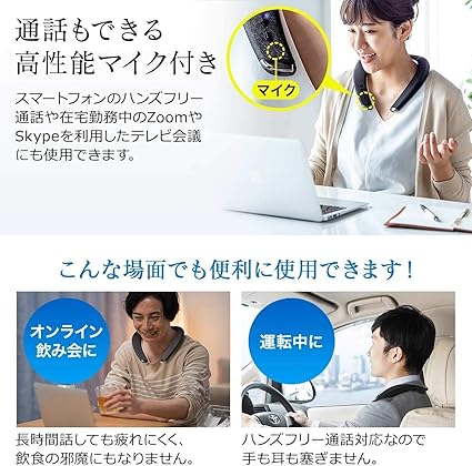 ・首・肩にのせるタイプの 首掛けスピーカー です。肩に乗せるだけで耳を塞がないから、開放感のあるスタイルで音を楽しめます。音に包まれるような感覚が臨場感のある新しいリスニング体験を実現します。