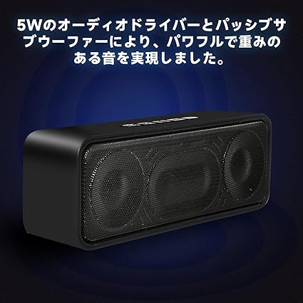 ・【高音質&ペアリング機能】コンパクトな小型Bluetoothスピーカーですが、パワフルさに欠けなく,最大3Wの大出力とわずか4Ωのインピーダンスにより、 EQイコライザー機能搭載でお好みでクリアな高音、中音、特別に強化された低音が再生でき、最大の音量でも音は割れません。TWS機能も対応しております。2台ワイヤレス音楽スピーカーがペアリンクして,オーディオ入力は3.5mmステレオ ミニジャックを備えており、スマートフォン(iPhone & Android)、iPadや他のすべてのBluetoothデバイスに簡単に接続できます。