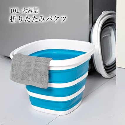 折りたたみ バケツ 10L 大容量 ブルー 洗車 掃除 アウトドア ガーデニング スクエア型 防災グッズ コンパクト 収納
