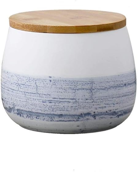 ・【美しく実用的】木製の蓋にはシールリングが付き、密封性に優れ、一般的には空気が入れません、普通と収納缶と比べ、もっと長い時間が収納できます。プロの職人で作る陶器収納缶として、小物が収納することができ、飾り物として棚に置いても可能です。