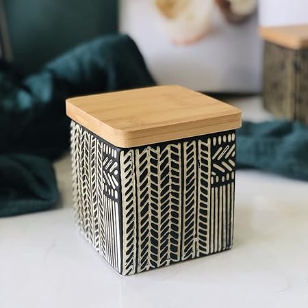 Winor 保存容器 キャニスター 陶器 気密缶 セラミック コーヒー豆 茶筒 珈琲 密封びん 北欧風 耐久性 ふた付き 缶 木製蓋 キャン