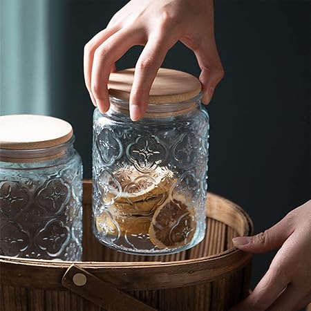 RareCi ガラスの保存瓶、食品の保存容器竹の木の蓋をした気密な食品の瓶、お茶、コーヒー豆、砂糖、キャンディー、クッキー、スパイスのための