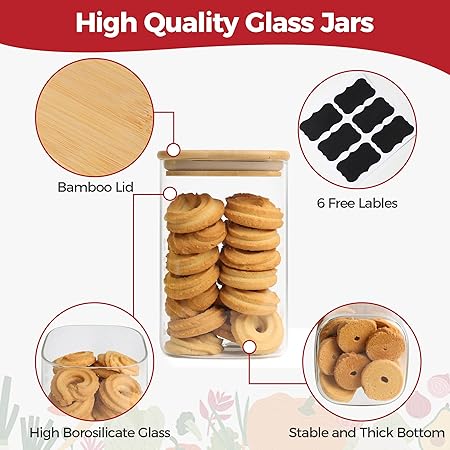 ・【優れた材質】このキャニスターは、ホウケイ酸ガラスとナチュラルな竹蓋で作られますが、鉛がなくて無毒です。また、上部のシリコンパッキンは無害なシリコン材料で作られて、取り外せて洗いやすいです。