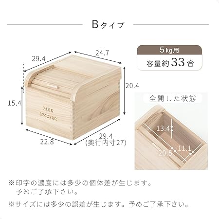 ぼん家具 米びつ 5kg 桐製 米入れ おひつ ライスストッカー ライスキーパー おしゃれ Bタイプ