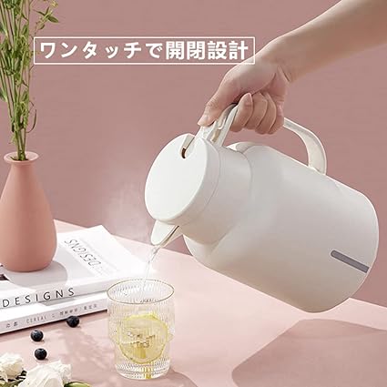 ・【ワンボタンで水を注ぐ】押して出水式の設計で、密封漏れ防止のと同時にポットの保温時間がもっと長く。また、フタが洗えるので、清潔に使用できます。