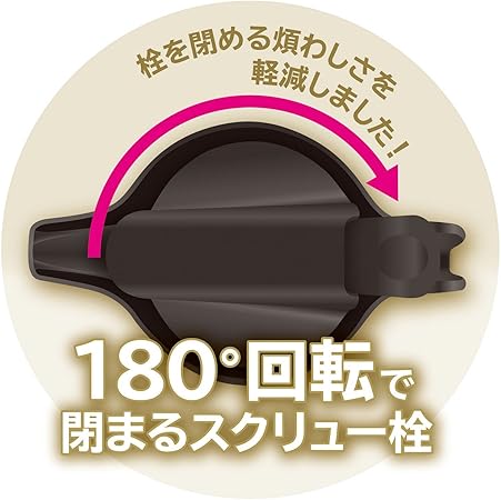 ・ステンレス二重構造なので、電気を使わずに保温・保冷●栓を閉めるわずらわしさを軽減。180度回転で閉まるスクリュー栓●内面はステンレス製なので氷を入れてもOK●フタは分解して洗える