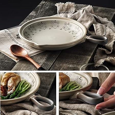 LINFFSTR 北欧風シングルハンドル耐熱土鍋卵調理用オムレツわんぐやき素材天然陶器オーブンでフライパンが使える
