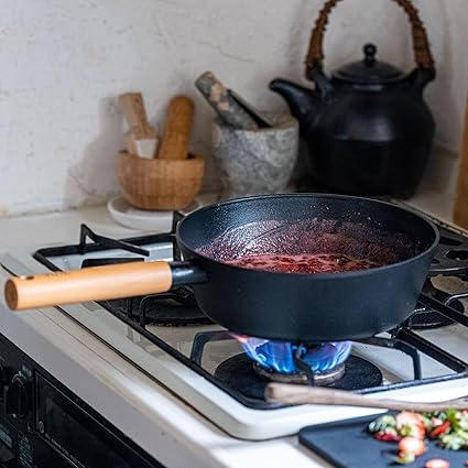 ・対応熱源:ガスコンロ IH調理器(100V/200V) / 内面・外面ともチタン&ダイヤモンドコーティングにてこびりつきにくい素材でできておりますが、金属ヘラ等のご使用はお控えください。また食洗機にはご利用頂けません。