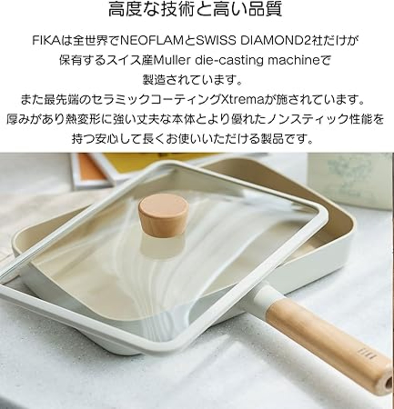 FIKA by Neoflam フライパン 29cm スクエア セラミック加工 ガスコンロ IH 対応