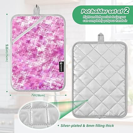 alaza 鍋敷き 断熱パッド 2枚セット 鍋つかみ 耐熱マット ピンク 芸術 北欧風 滑り止め 洗える キッチン用品 キッチン雑貨