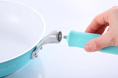 当製品の20cm・24cm・28cm各サイズを重ねてもハンドル同士がぶつからず、まとめて収納できます。また、ハンドルを外してコンパクトに収納することが可能です。※フライパン本体の内側にキズが付かないようにふきんなどを挟んで保管してください。