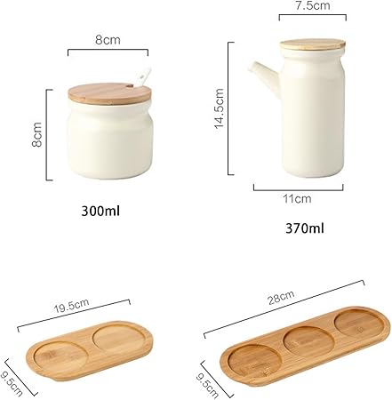 ・【製品仕様】材質:セラミック、サイズ:調味料ポット8 * 8CM 容量 300ml、オイルボトル14.5 * 11CM 容量 370ml。