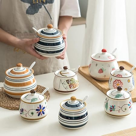 vumuio(クレイジー)調味料入れ スパイスボトル 調味料ポット 保存容器 砂糖入れ 陶器 キャニスター 調味料ケース シュガーポット 塩