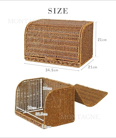 ・水洗いができる、見た目と機能性にこだわった手編みのブレッドケース。まるで天然素材のラタンバスケットのような見た目です。