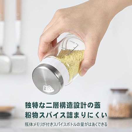 ・【目詰まりしにくい】自社の調味料入れは普段と違え、蓋の構造は二層となっています。その為、ふりかける際に鍋などの湯気からスパイスを守り、使用中の粉物スパイスが詰まりしにくくなります。