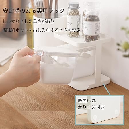 ・【滑り止め付き】しっかりとした重さがあり、底面に滑り止めがついているので、調味料ポットを出し入れする時も安定します。