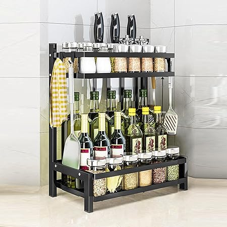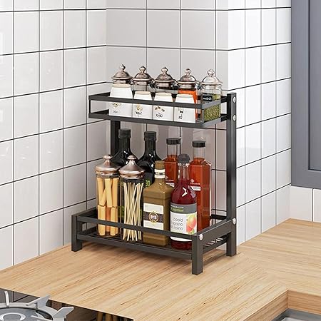 SVOHZAV 調味料ラック 2段 スパイスラック 多機能 省スペース キッチン 収納 調味料棚 調味料入れ 安定 ([幅20cm]ー2段式