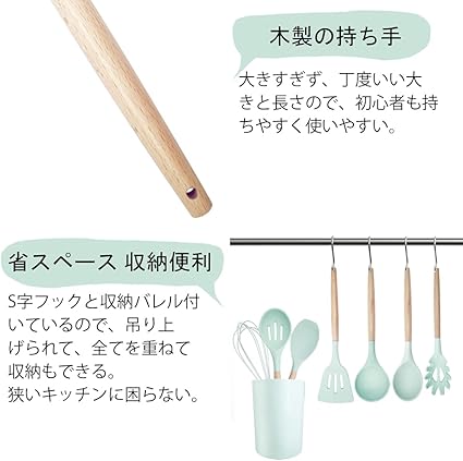 ・?【耐高低温&耐久性 収納便利】:耐熱温度は-40℃~230℃。電子レンジ、食洗機、熱湯消毒と塩素漂白も対応。S字フックと収納バレル付いているので、持ち手の穴で吊り上げられて、全てを重ねて収納もできる。狭いキッチンに困らない。