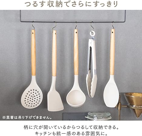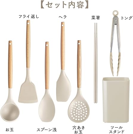 ・セット内容:フライ返し、お玉、ヘラ、スプーン浅、穴あきお玉、菜箸、トング、ツールスタンド