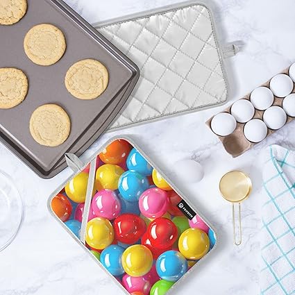 alaza 鍋敷き 断熱パッド 耐熱マット 2枚セット 鍋つかみ 滑り止め 洗える 北欧風 カラー 球柄 お鍋シート 耐熱手袋 キッチン用品