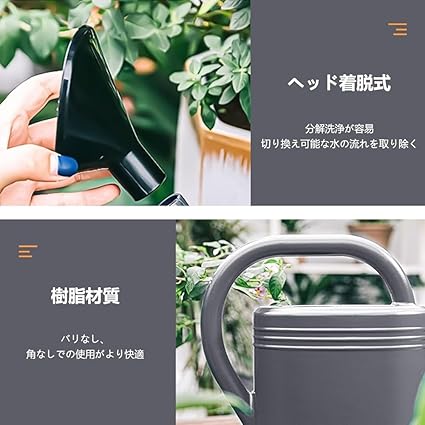 ・適用時間:このじょうろは開口部が大きく、水を入れやすいので、観葉植物、花、ハーブの鉢、鉢植えなどの水やりに最適です。そのほか、毎日の掃除や衛生管理にも大変便利です。