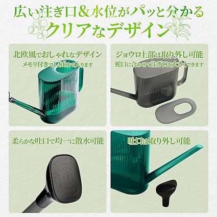 ・細かい吐口なので柔らかな吐水で均一に植物に優しく散布でき、土の飛び散りを防ぎます。(先端部分は2WAY仕様)