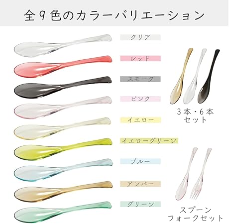 ・【涼しげな見た目】このすぷーんは、涼しげでかわいらしい見た目が特徴です。ティースプーン・コーヒースプーン・アイスクリームスプーン・ヨーグルトスプーンなどデザートスプーンはもちろん、韓国スプーン(スッカラ)のように最後のひとくちまですくいやすくカレースプーン・スープスプーンといったディナースプーンにもぴったりです。一般的な蓮華スプーン(れんげ)よりも細長くて口に入れやすいため、小さい口のお子様も食べやすい形状となっています。同じシリーズにはフォークもございますので、セットで揃えて食卓をカラフルに彩るのもおすすめです。
