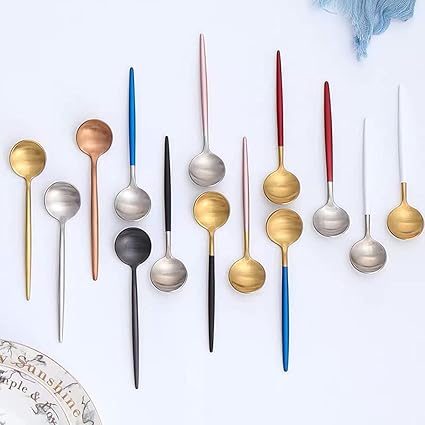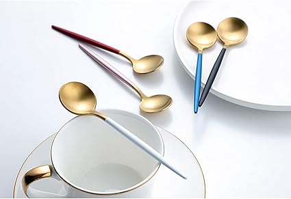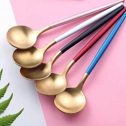 ・【セット内容】:ティースプーン 5本 サイズ:長さ13cm 幅3cm 重さ27g/本 カラー:ゴールド/ブラック(多色選択可能)