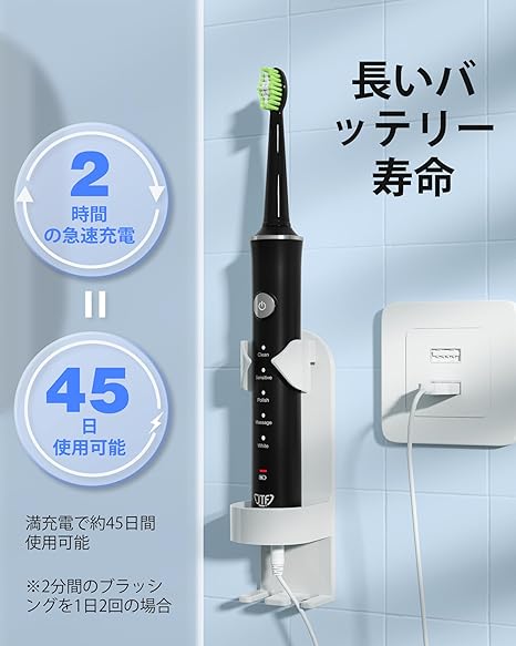 ・【安心使用】専用替えブラシ8本を搭載し、最長2年間使用可能。コシのある超極細毛が歯間や歯周ポケットに入り込み、プラーク(歯垢)やステイン(着色汚れ)を徹底的に洗浄します。細菌の繁殖を抑えるため、歯ブラシの交換用ヘッドは3ヶ月ごとに交換してください(専門家推奨の歯磨き時間)。 【45日間使用可能】充電式電動歯ブラシは大容量バッテリーを搭載し。1度の充電で最大約45日間使用可能です(※約2時間充電、1日2回2分で使用した場合)。
