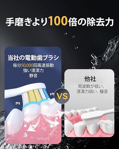 ・【 50,000回/分の高速音波洗浄技術 】人間工学に基づき設計された、約98gの超軽量設計でスリムで握りやすく、初心者も使用しやすいです。老若男女どんな方でも歯に優しく当てるだけで、わずか2分間で口腔内をキレイに洗浄できます。 『ハイテク磁気浮上式モーター』を搭載し、高速音波振動で手磨きより10倍以上の効率で歯垢をはらい落します。同時に音波振動が口の中に水分の流れを発生させ、効果的に歯の隙間の汚れをキレイにします。確かなブラッシング力で汚れをうかせて歯石の付着を防ぎ、大手メーカーも落とせなかった奥歯や歯間の歯垢をやわらか毛先でかき出します!