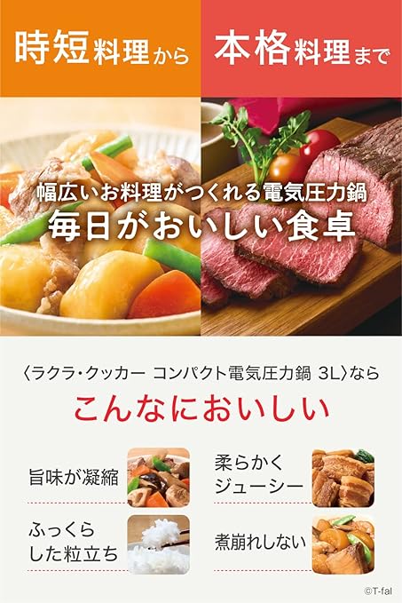 【オンライン限定】 ティファール 電気圧力鍋 3L 4人用 時短 おまかせ手料理 1台12役 自動調理 無水調理 「ラクラ・クッカー コンパ