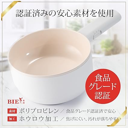 ・【焦げ付きにくいホウロウ加工】内面はポリプロピレン(PP)素材を採用しました。食品グレード認証済で安全。焦げ付きにくく、汚れが落ちやすいホウロウ加工を施したことで、少量の油でも焦げ付きにくく、健康的に調理ができます。