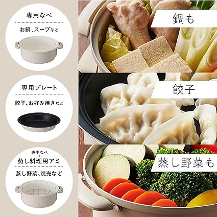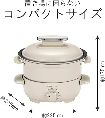 モノクローム グリル鍋 電気 小型 一人用 ホットプレート 蒸し料理用アミ 20cmコンパクトサイズ ホワ