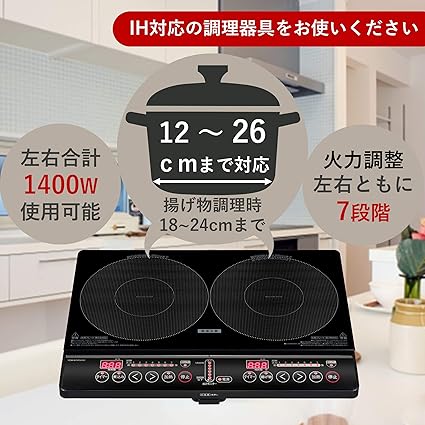 ・【2口IHで調理時間を短縮】2つのストーブを同時に使用できるため、調理時間を短縮できます。汁物や炒め物、揚げ物まで簡単に調理できます。