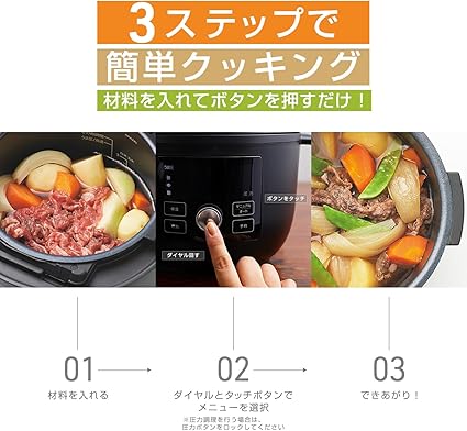 一般的な電気圧力鍋は1.7気圧以上の高圧力をかけて調理しますが、TIGER COOKPOTはやさしい圧力(約1.15気圧)で、調理を開始してから食べられるまでの行程時間を短くしました。食材のおいしい食感を味わうことができ、時短とおいしさの両方を叶えます。煮崩れしやすいじゃがいも、玉ねぎ、にんじんなどの食材も、うま圧なら煮崩れしにくく柔らかく、おいしい食感に仕上げます。お肉は柔らかいのにパサつきにくく、しっとりした食感に仕上げます。炊飯器メーカーとして50年以上の間、積み上げた「ごはんをおいしく炊くノウハウ」と”うま圧”が掛け合わさることで、お米の甘みを引き出したおいしいごはんが炊けます。料理としてだけではなく、炊飯器としても活躍します!「うま圧」メニューでは、一定圧力(約1.15気圧)をかけて調理を行った後は約5分で減圧を完了。高圧力をかけて調理する一般的な電気圧力鍋よりも、調理を開始してから食べられるまでの行程時間が短くなり、調理後にすぐに料理を食べられます。お手入れパーツは内なべ、つゆ受け、内ぶたの3点だけ。つゆ受け、内ぶたは食洗機に対応しており、使った後の後片付けもラクにできます。操作パネルから作りたいメニューの番号を選ぶだけの簡単操作で毎日の献立のレパートリーが広がります。