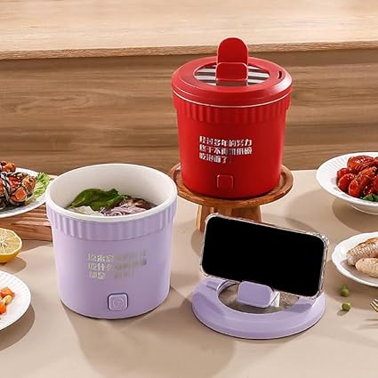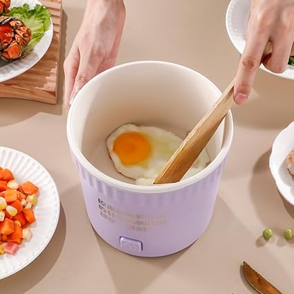 Jinmoioy ポータブル調理鍋 電気鍋 一人用 ミニ鍋 ミニ電気炊飯器 容量1L 多機能 麺ポット、ラーメン、スープ、鍋蒸し、揚げ物用