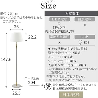 ・対応電球:LED電球 / 口金サイズ:E26 / 定格消費電力:LED電球13W以下(明るさ60W相当以下) / 定格電圧:AC100V / 定格周波数:50/60Hz / ※電球は付属しておりません。