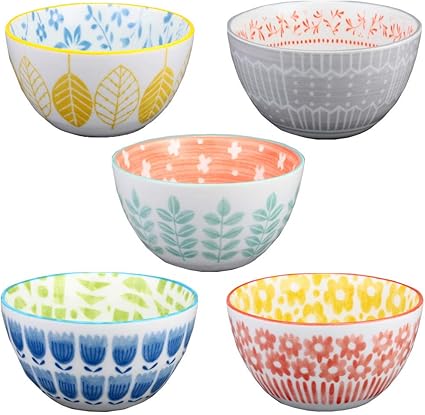 暮らしの彩り ボウル 美濃焼 北欧フラワー 5柄セット 日本製 径12.5cm 480ml 鉢 丼 電子レンジ対応 食洗機対応 陶磁器 おし
