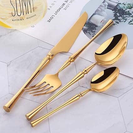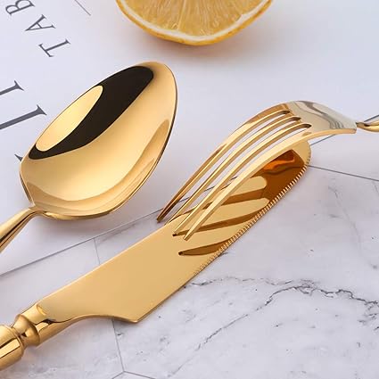 Buyer Star ステンレス カトラリーセット ゴールド ナイフ フォーク スプーン 4本セット 高級洋食器 北欧風 一体型ディナーセッ