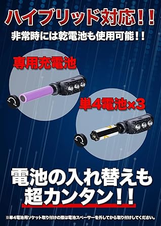・【ハイブリット電源】単4電池×3本または充電池18650×1本でご使用頂けます。単4電池で使用する場合は、付属の単4電池用ソケットをお使いください。