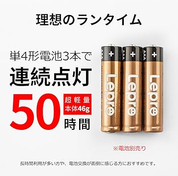 ・【電池式・長時間点灯】単4形乾電池三本(別売り)で、実用点灯時間は7〜50時間長く持続できます。電池が切れてしまった場合でも、簡単に電池交換するだけで再び使用可能です。また、充電の手間がないため、電源のないアウトドアシーンでも手軽に使用できます。