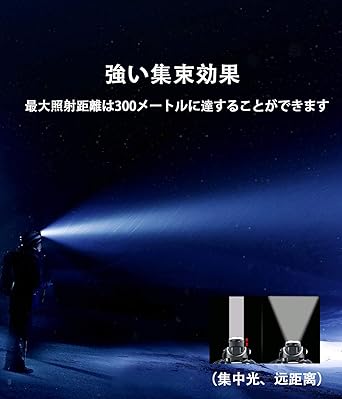 ・【センサー機能・快適さと調整可能・IPX-6防水】ライト部分で上下の照明角度は120度の調節範囲が可能です。ランプヘッドを伸縮して、焦点距離を変更します。キャンプ、夜釣り、自転車ライト、登山、ランタン、停電、防災、地震対策、車のメンテナンス、作業用その他の家庭用照明で広く使用されています。IPX-6防水グレードは、自信を持って雨に対応できます。どのモードでも、スイッチを長押し続けるとセンサー機能がオンになり、手を振ると(10 cm以内)点灯/消灯でき、自由に作業できるようになります。