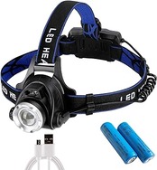 ・【USB充電式・航続時間が長い】大容量バッテリー、点灯モードによってフル充電で約5-10時間使用可能で、充放電で繰り返し使用できます。ヘッドライトはUSB充電ケーブルで充電可能です.便利で速いです。(電池2本と充電ケーブル付き)。
