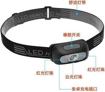 ・【5種の点灯モードと記憶機能】へっどらいとは5種の点灯モードを提供:ホワイトビームの高・中・低;赤いビーム:常に点灯;緊急用のSOS点滅。前回の点灯モードを自動的に記憶して、毎回点灯モードを選択の面倒を除く。特定の点灯モードに4秒以上止まったら選択は承認します、その時多機能ボタンを押すと電源オフできます