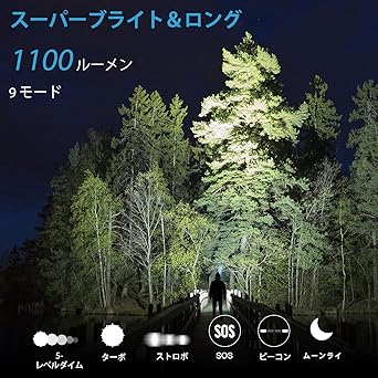 ヘッドライト 充電式,軽い 明るい 1100ルーメン 密閉型防水 LED ヘッドランプ 防塵 9種点灯モード SOS点滅 180度調整可能